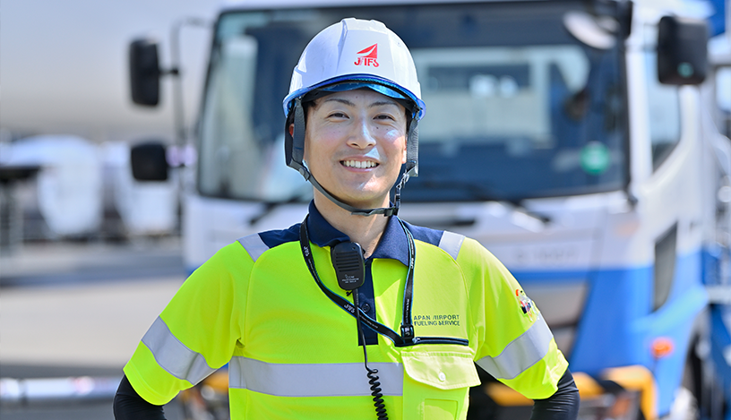 私はもともと飛行機が好きで、飛行機に携わる仕事がしたいと思っておりました。JAFSに入社を決めたのは、日本一国際線の就航数が多い成田国際空港で、給油シェア9割を誇る会社で給油作業を行ってみたいと強く思ったからです。自分が携わった航空機が離陸した瞬間は、感動を覚えました。まずは一人でも確実な給油作業が行えるよう、日々経験を積んでいるところです。将来は周囲の誰からも頼られ、誰にでも気を配れる存在になりたいです。